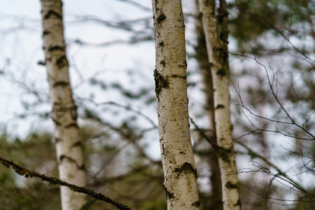 Landscape with birch tree trunk and branches