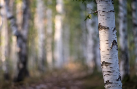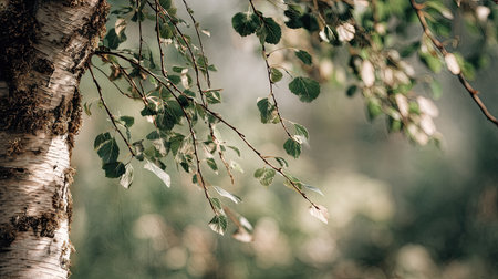 The Birch bark at dawn soft golden sunlight kissing leaves clean air natural color