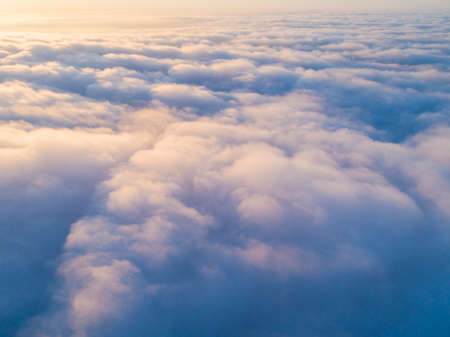 Beautiful sunrise cloudy sky from aerial view. Airplane view above clouds - Background