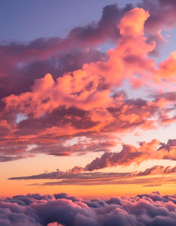 beautiful cumulus clouds at sunset, sunrise. fabulous background with copy space