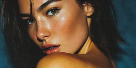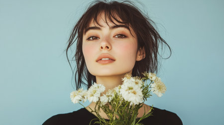 A young woman with shoulder-length dark hair poses with a confident expression. She looks off to the side, showcasing her features against a muted backdrop that enhances her natural beauty.