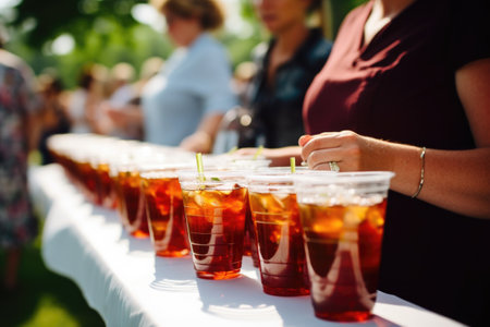 Closeup of a nonalcoholic drink being served at the refreshments table of the event