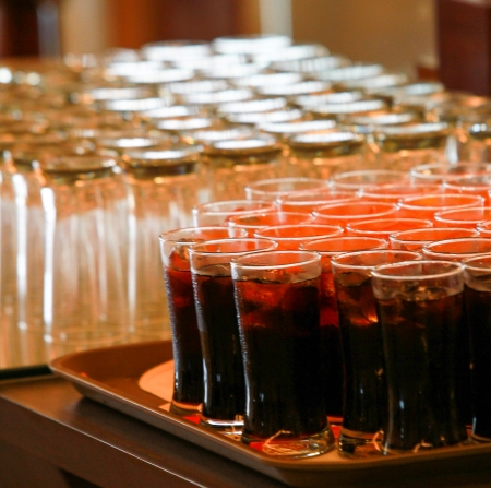 Water glass cola and orange with for service customer