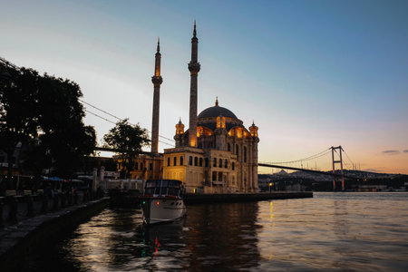 ISTANBUL, TURKEY - JULY 26, 2019: Buyuk Mecidiye Camii - Ortakoy Mosque in city of Istanbul, Turkey