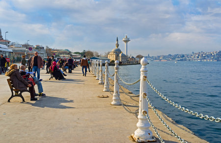 ISTANBUL, TURKEY - JANUARY 21, 2015: The Uskudar embankment, located on the Asian shore of the Bosphorus and it's popular place among the tourists and locals, on January 21 in Istanbul.