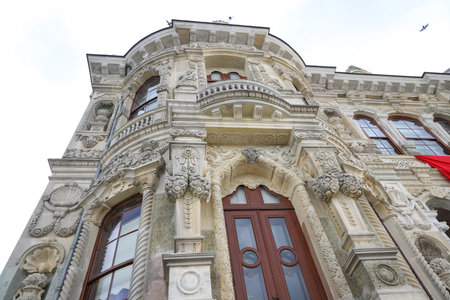 Wooden mansion detail at Bosporus Strait in Istanbul Turkey a bright summer day.