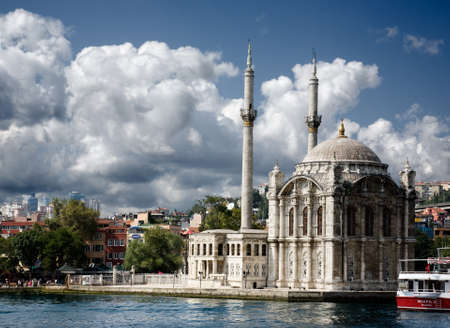 Panoramic view of Ortakoy mosque in city of Istanbul, Turkey