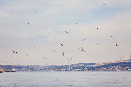 Seascape of Bosphorus Strait in Istanbul, Turkey. Turkish water transport concept