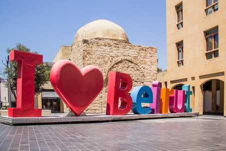 BEIRUT, LEBANON - JULY 21, 2022: I love Beirut sign in Beirut Souks commercial district in Beirut, Lebanon