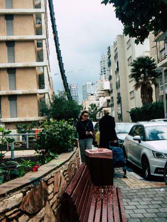 Tel Aviv Israel November 23, 2018 View of unknown Israeli people walking in the streets of Tel Aviv in the afternoon