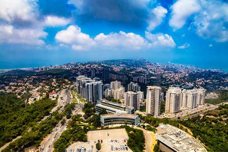 Homes and Buildings in a modern city, Haifa, Israel. Cityscape background.