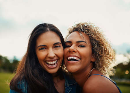 When your bestie is the funniest thing ever. two attractive young girlfriends having a laugh together at a park.