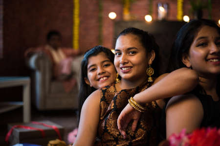 brother and sister cute expression on the occasion of hindu raksha bandhan festival at indoor