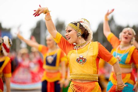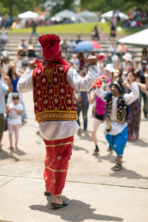 Columbus, Ohio, USA - May 27, 2018 A group of Bhangra dancers perform at the Asian Festival and the public join them in the dancing.