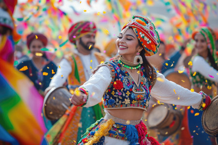Vibrant Cultural with Colorful Costumed Performers Dancing in a Festive Parade Showcasing the Diversity and Joyful Spirit of a Community s Traditions and Heritage