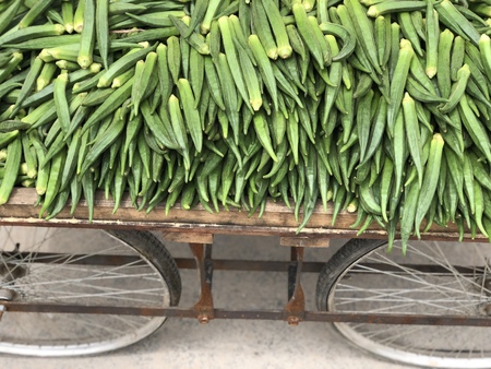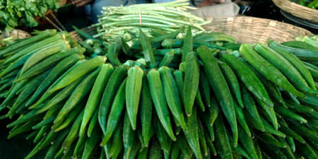 Fresh green okra, Organic vegetable, Asian food ingredients