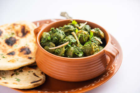 Soya Chunks Palak curry also known as Spinach Soyabean chunks sabzi or sabji, Healthy Indian food