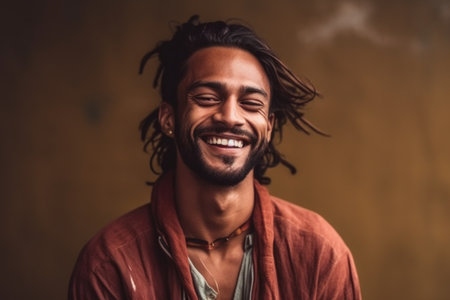 Portrait of a handsome young man with dreadlocks smiling at the camera