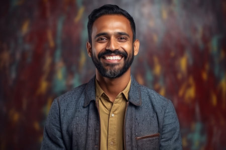 Portrait of a smiling indian man on a grunge background