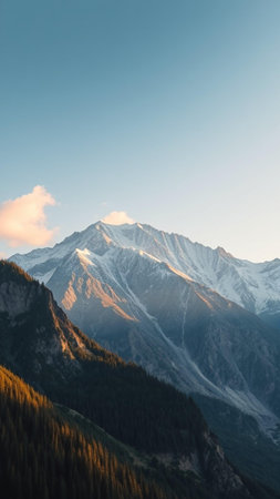 Landscape of mountain range covered with snow in Manali during summers, captured during the sunset with mist and fog
