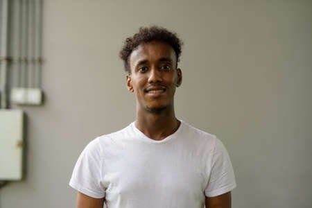Portrait of handsome black African man with cool attitude against plain wall background