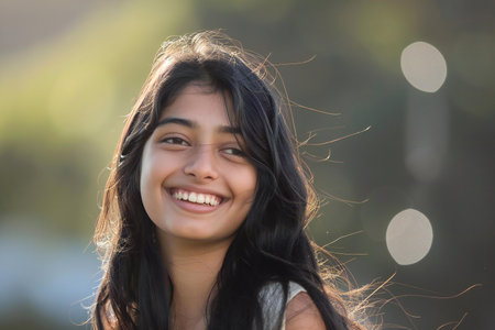 Portrait of a beautiful young Indian girl smiling at the camera.