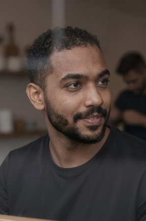 Portrait of a handsome African-American man with a beard and mustache