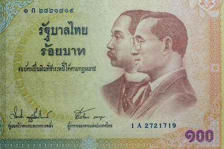 The 100 baht Thai banknotes have the image of Rama 5 and Rama 9.