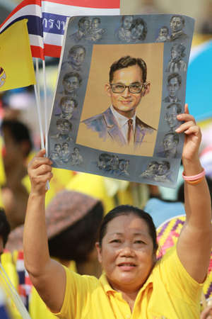 BANGKOK ,THAILAND - DECEMBER 5: Unidentified Hundreds of thousands of people thronged the Royal Plaza to help celebrate HM's 85th birthday; the King is the world's longest-reigning monarch. His Majesty ended his birthday speech delivered to all well-wishe