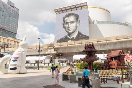 Bangkok, Thailand - October 5, 2017: To pay final tribute to HM King Bhumibol Adulyadej, CentralWorld is holding many exhibitions and related activities under the Still On My Mind theme throughout October.