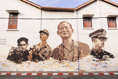 BANGKOK, THAILAND - November 12,2016 : Thai art students paint portraits of Thai King Bhumibol Adulyadej at Silpakorn University in Bangkok. King Bhumibol, the world's longest reigning monarch.