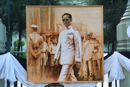 The Royal Cremation for His Majesty the late King Bhumibol Adulyadej. Drawing of the King in Phuket City.