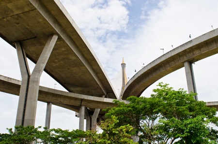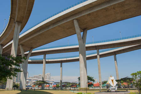 Bhumibol Bridge or Bridge of Industrial Rings is concrete highway overpass and cross the Chao Phraya River, Thailand.