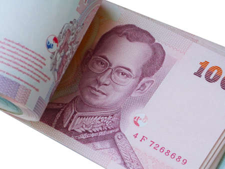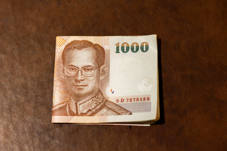 Close up of thailand currency, thai baht with the images of Thailand King. Denomination of 1000 bahts.