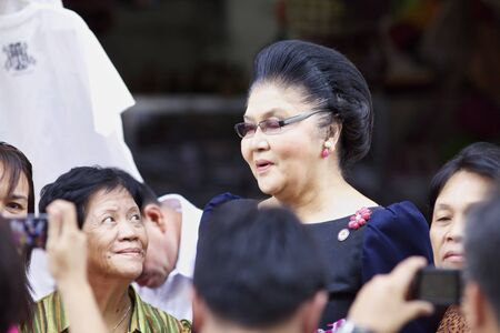 VICAN CITY, PHILIPPINES - FEB 19: Former Philippines First Lady Imelda Marcos shopping amongst supporters in Vican City, Philippines on February 19, 2012. She is widow of President Ferdinand Marcos
