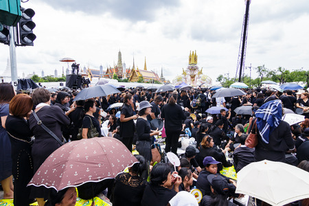 Bangkok, Thailand - October 22, 2016 : Thai people in funeral of of His Majesty King Bhumibol Adulyadej at the royal grand palace.