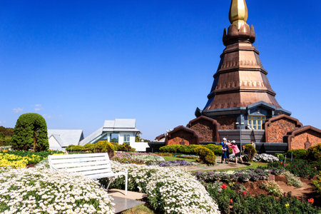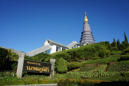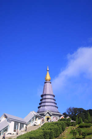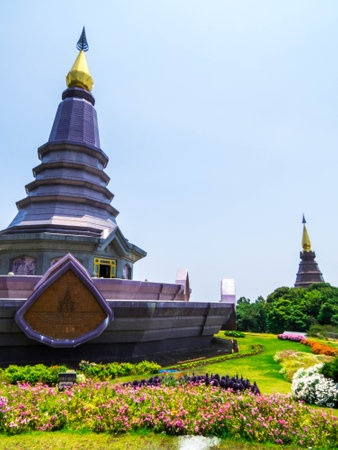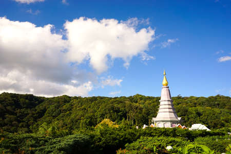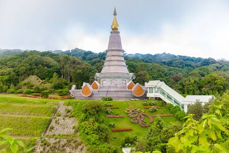 Landmark landscape pagoda Noppamethanedol & Noppapol Phumsiri in doi Inthanon national park at chiang mai Thailand, They are public domain or treasure of Buddhism, no restrict in copy or use
