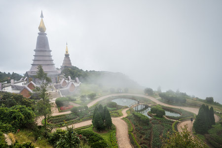 Landscape of two pagodas noppamethanedol noppapol phumsiri at inthanon mountain Chiang mai Thailand