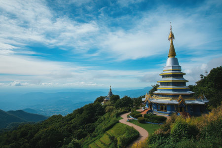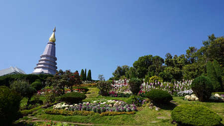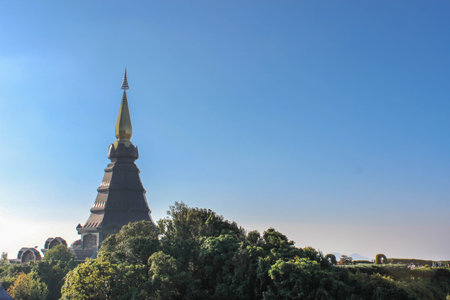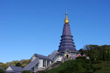 Landscape of pagoda at the Inthanon mountain at sunny day, Chiang Mai, Thailand. Inthanon mountain is the highest mountain in Thailand.