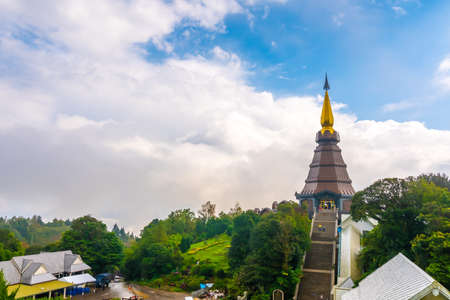 Landscape of pagoda on the top of Inthanon mountain, Chiang Mai, Thailand.