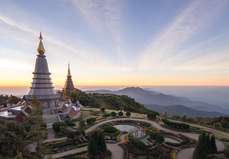 Landscape of Two Pagodas at Doi Inthanon. Chiang Mai. Thailand.