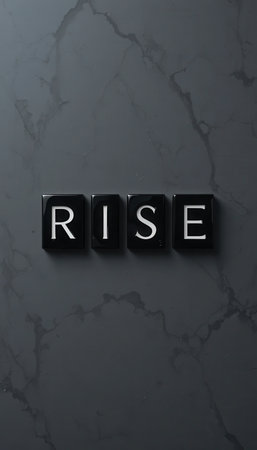 Inspirational message RISE set on a sleek black marble background. The elegant typography emphasizes positivity and motivation, perfect for encouragement.
