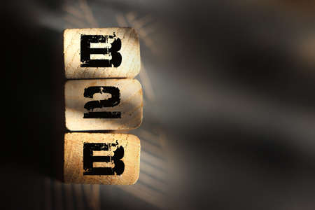 B2B letters on wooden blocks on dark background with copy space, business concept