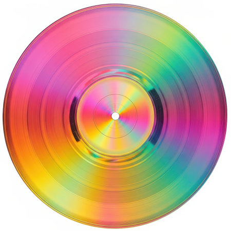 Experience the pure joy of music with this stunning rainbow-colored vinyl record. Its vibrant hues swirl and blend, creating a captivating visual symphony for any audiophile or music lover.