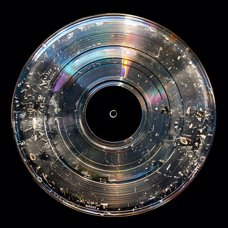 Detailed view of reflective CD surfaces showcasing unique textures and circular grooves