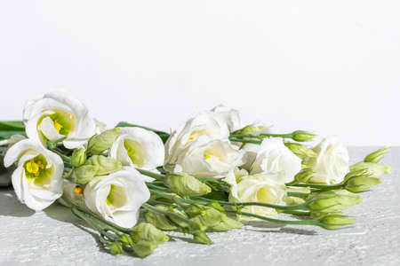 The flowers eustoma on White wooden background. Close up