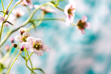 White and pink saxifrage flowers macro closeup.