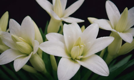 A captivating image of a delicate white flower with soft petals, isolated against a dark background, creating an artistic and serene ambiance.