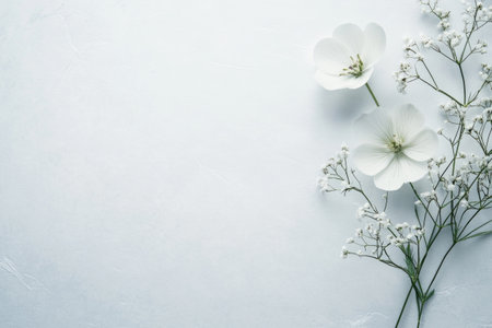 This image features delicate white flowers against a soft blue background, exuding elegance and tranquility, ideal for floral inspirations and nature themes.
