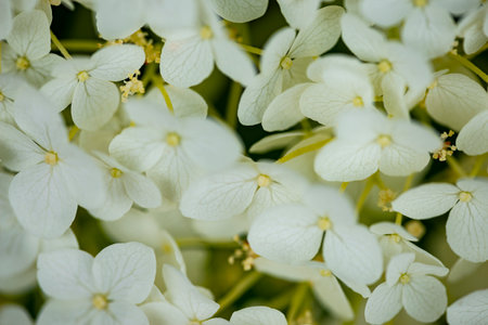Background of white hydrangea blossoms